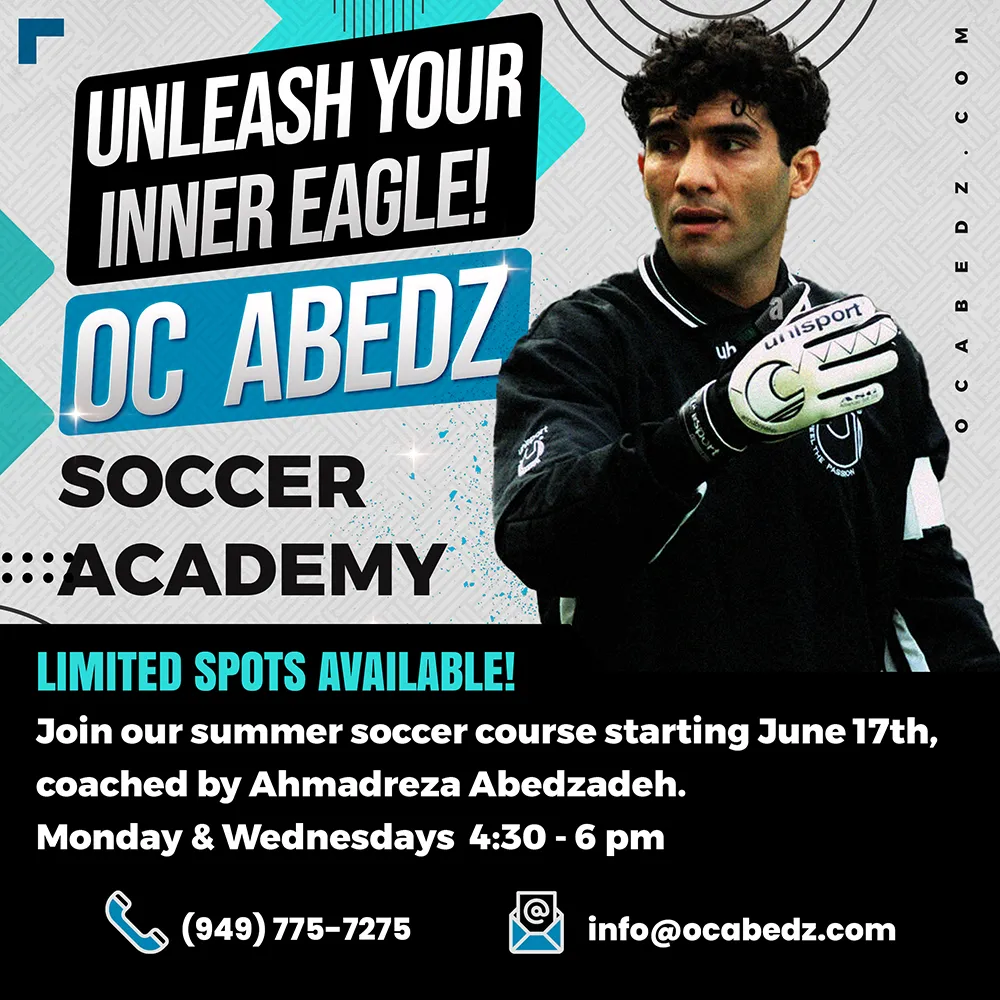 Because with Abedzadeh passionate guidance, your children will not only learn the technical skills but also gain invaluable life lessons such as discipline, teamwork, and perseverance. Abedzadeh's dedication to nurturing young talent and his infectious love for the sport will ignite a fire within your little ones, inspiring them to reach new heights on and off the field. Enroll your children in his football training classes today, and witness their dreams take flight under the guidance of a true legend!